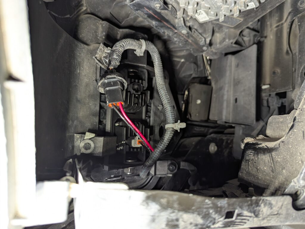 - Before closing up your fender liner, put the vehicle into ‘Accessory Mode’ (Push the Start button once without foot on brake, then press the ‘Fog Light’ button to make sure the fog light is operational. If it is not working, double-check your connectors, pushing them in securely.